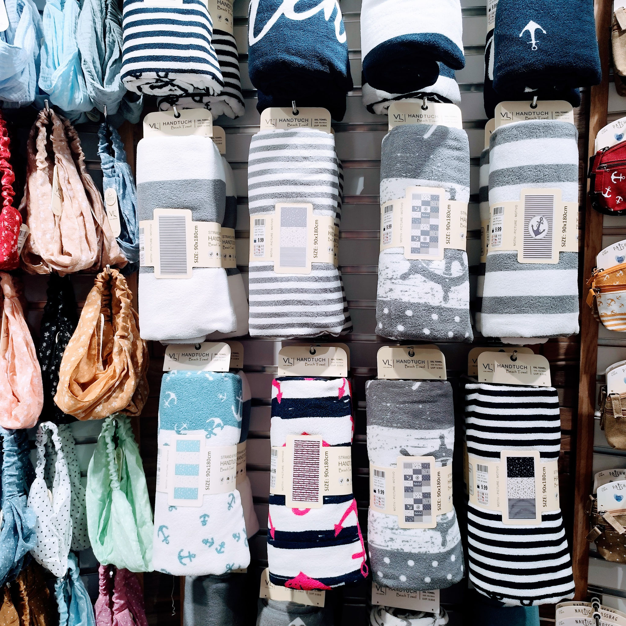 Schöne weiche Handtücher in verschiedenen Designs gibt's jetzt im KÜSTENWAHN Store in Kühlungsborn-West. Eine große Auswahl an Sonnenbrillen und Strandtaschen erwartet euch neben vielen anderen Dingen für einen Besuch am Strand in unserem Geschäft ganz in der Nähe des Riesenrads.